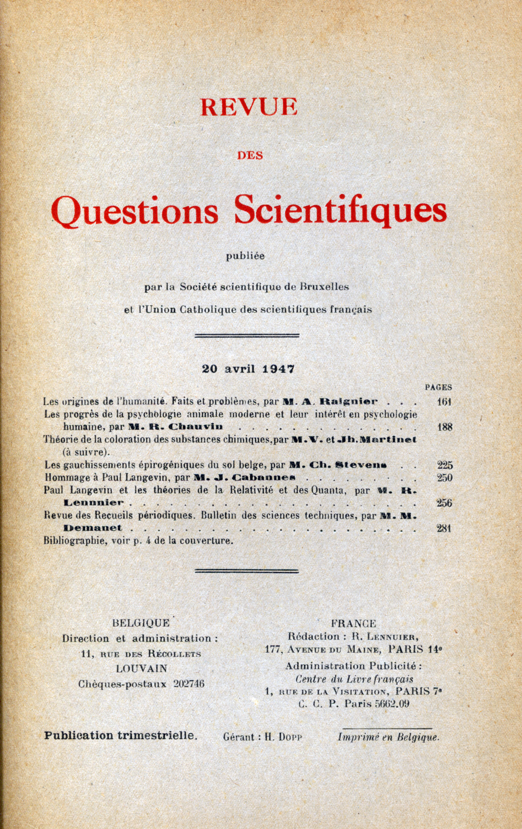Catégorie: Revue des Questions Scientifiques