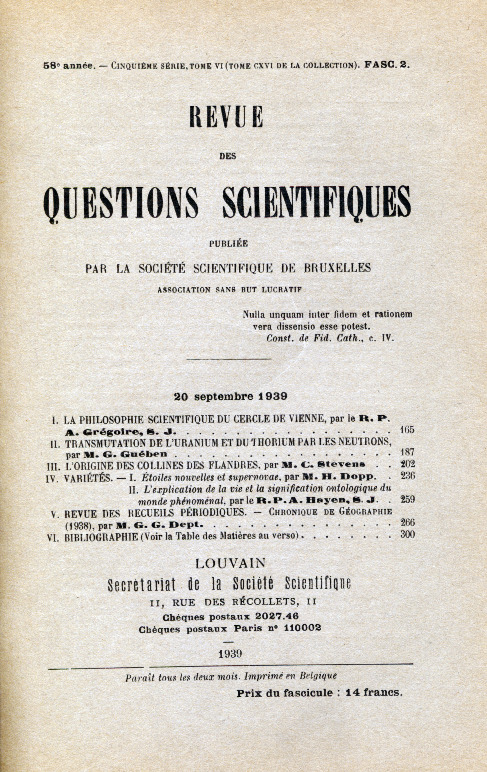 Catégorie: Revue des Questions Scientifiques