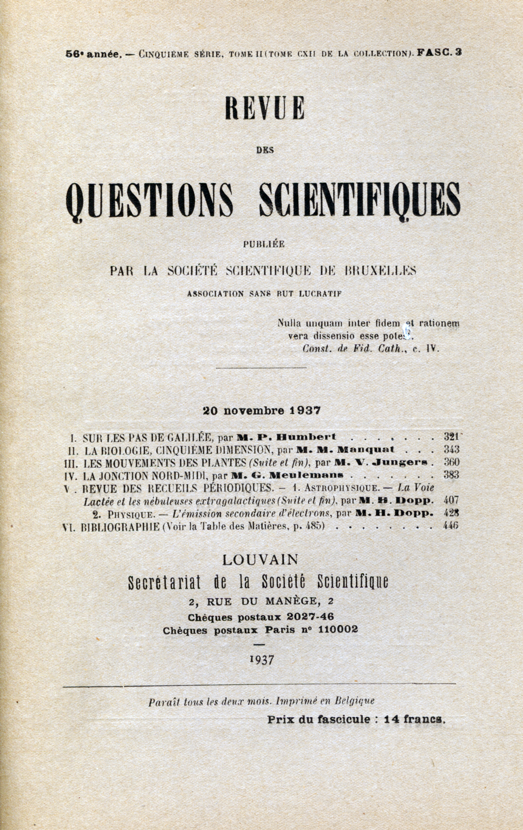 Catégorie: Revue des Questions Scientifiques