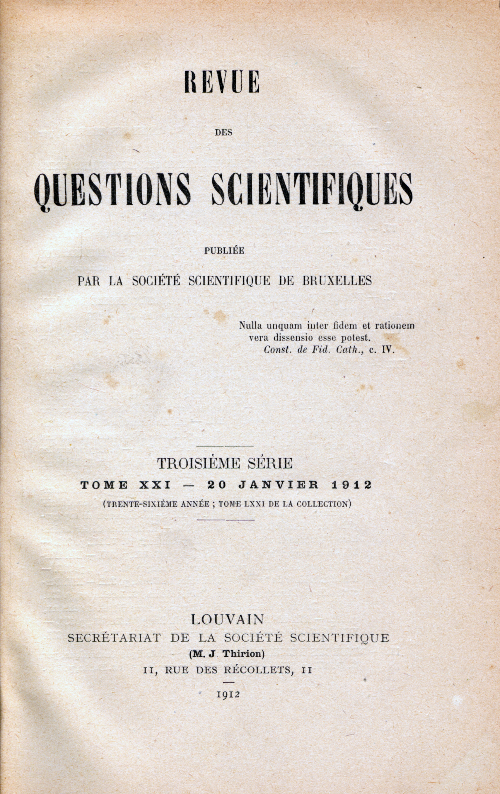 Mansion (Paul), Compte rendu de «Un moine au XXe siècle : Dom Mayeul Lamey, prieur majeur des Bénédictins de Cluny (1842–1903) : œuvres choisies», in Revue des Questions Scientifiques, 36e année, t. 71 (3e série, t. 21), 20 janvier 1912, n°1, p. 672-673.