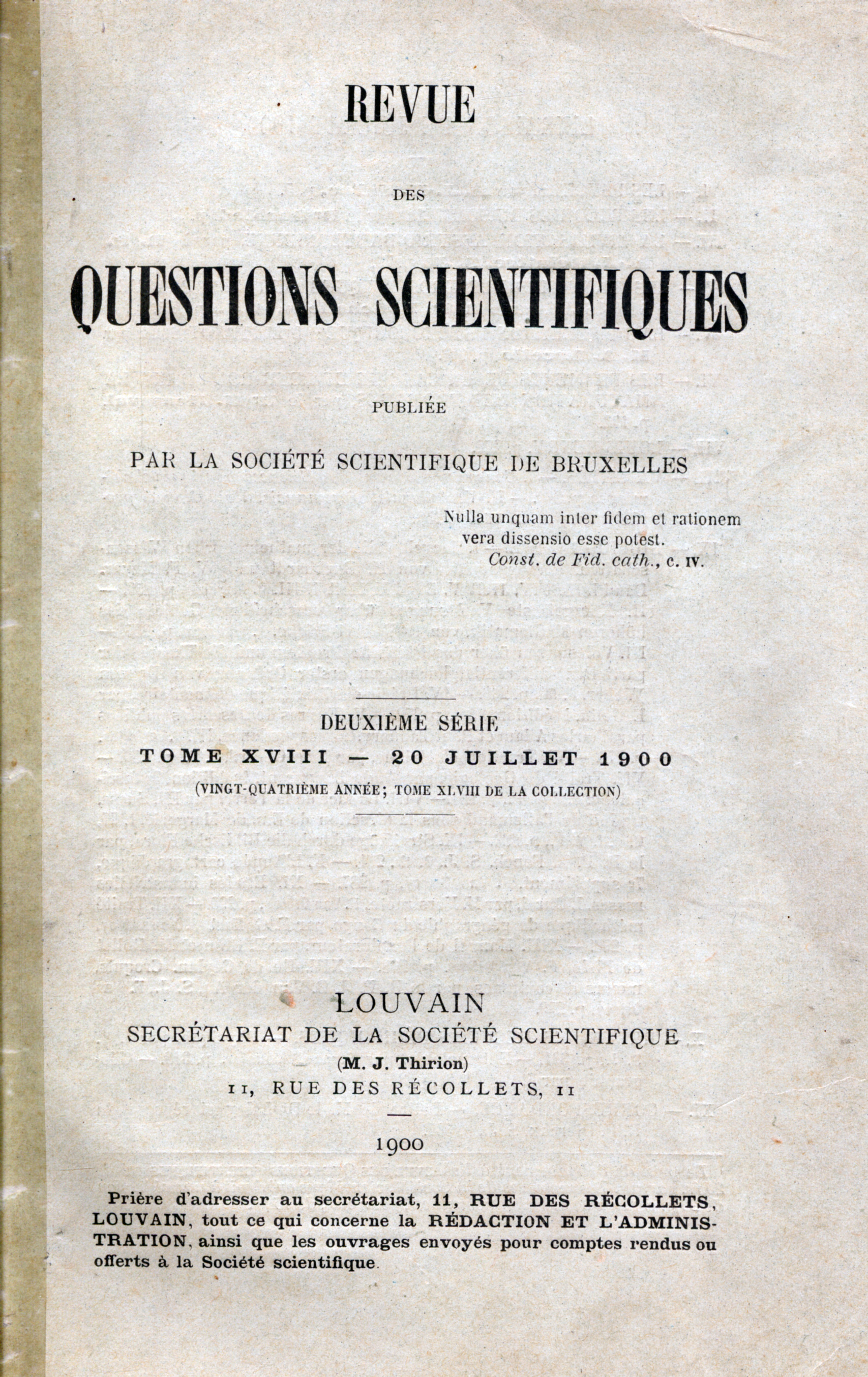 Mansion (Paul), Compte rendu de É. Gelin : «Précis d'arithmétique élémentaire à l'usage des écoles moyennes, des cours professionnels, des écoles normales et des classes d'humanités» / signé P. M., in Revue des Questions Scientifiques, 24e année, t. 48 (2e série, t. 18), juillet 1900, n°3, p. 270-272.