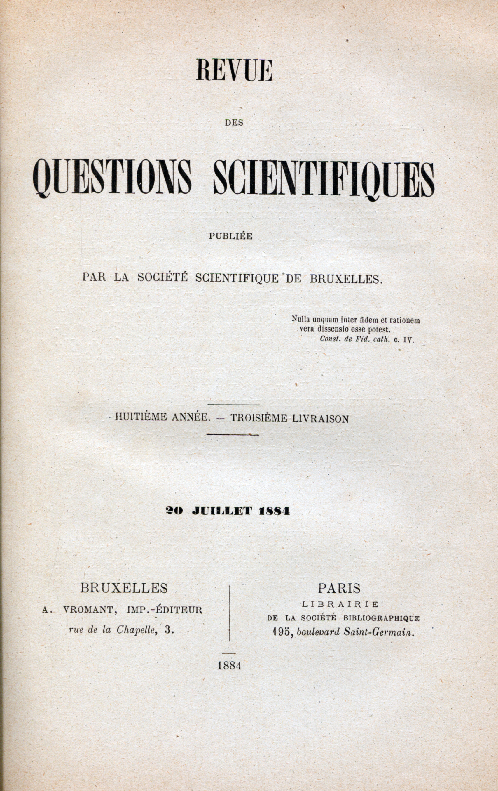 Suchetet (André), La création des animaux domestiques, in Revue des Questions Scientifiques, 8e année, t. 16, 20 juillet 1884, n°3e livraison, p. 190-218.