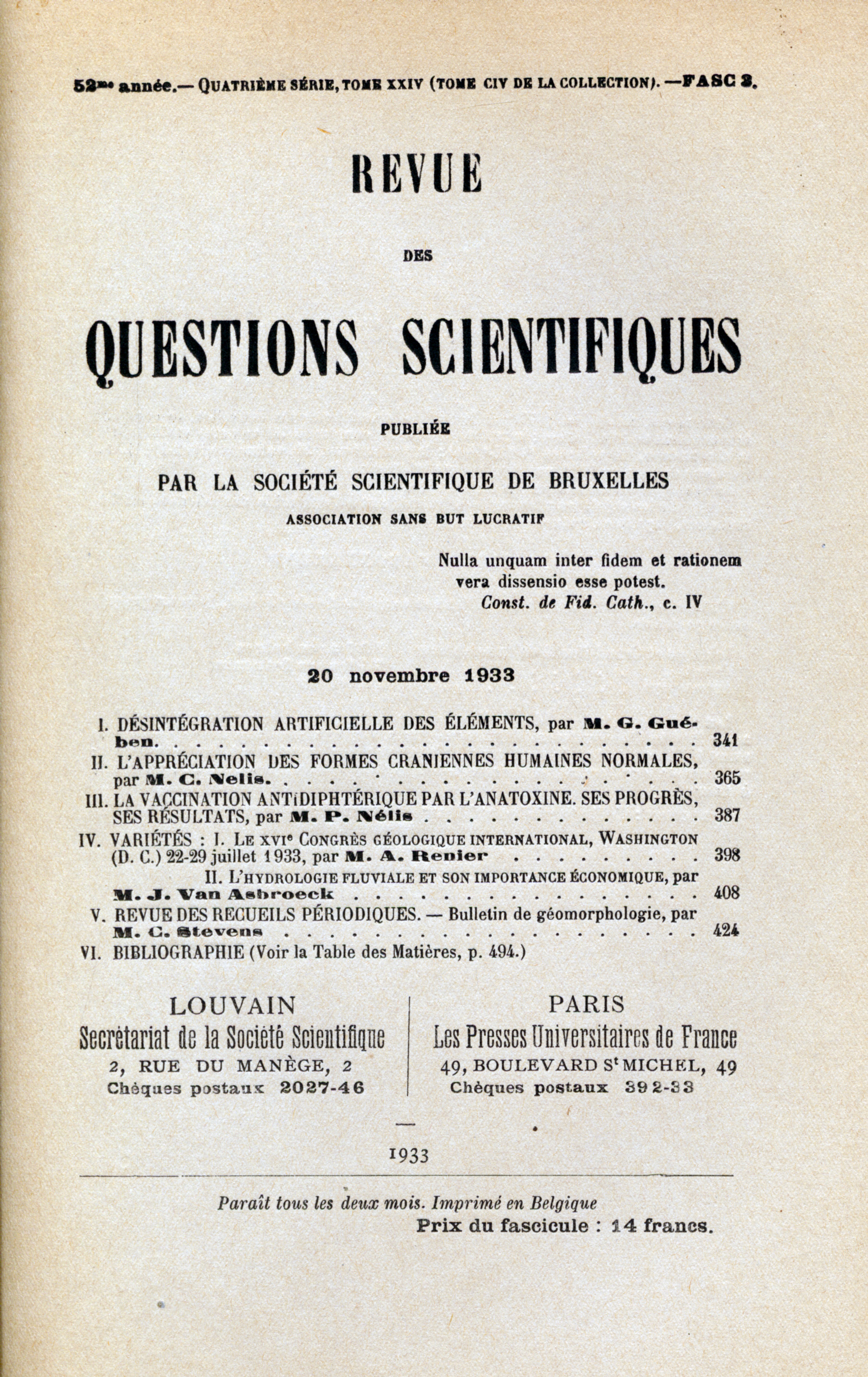 Catégorie: Revue des Questions Scientifiques
