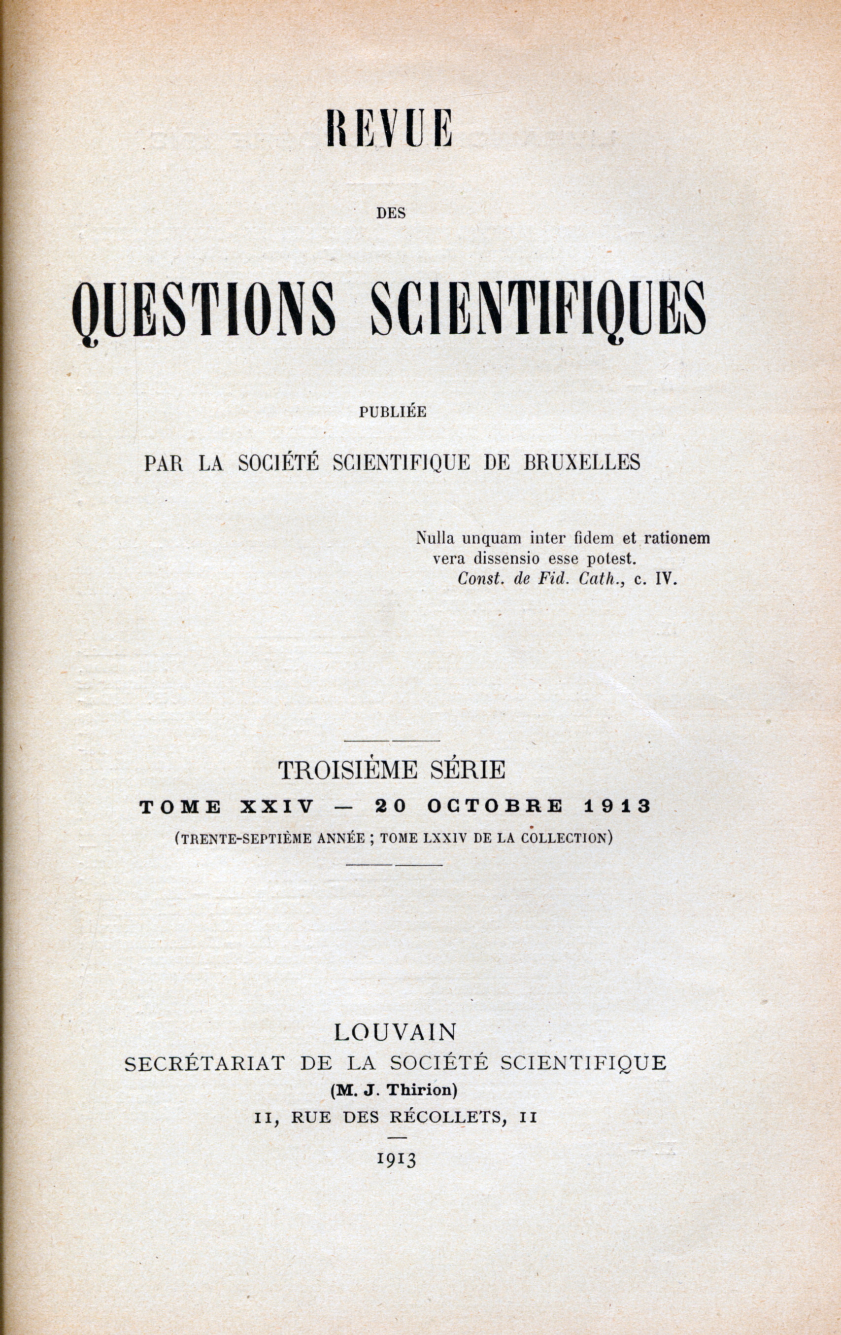 Bosmans (Henri), Compte rendu de A. Collard : «Catalogue des livres, brochures et cartes [de la] Bibliothèque de l’Observatoire royal de Belgique», tome 2, fascicule 3 / signé H. B., in Revue des Questions Scientifiques, 37e année, t. 74 (3e série, t. 24), 20 octobre 1913, n°4, p. 611-611.